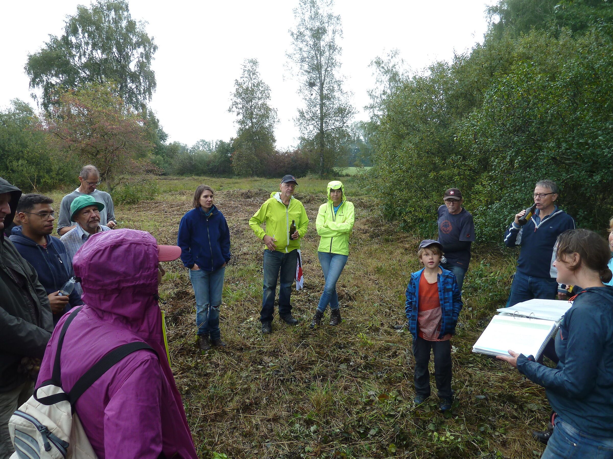 In der Brotzeitpause erläuterte Rita Rott aus der Ortsgruppe Dorfen die Geschichte des Naturschutzgebiets, das in letzter Zeit sehr unter der Trockenheit leidet. Der BN plant derzeit gemeinsam mit der Oberen und Unteren Naturschutzbehörde Maßnahmen zur Verbesserung der Situation.