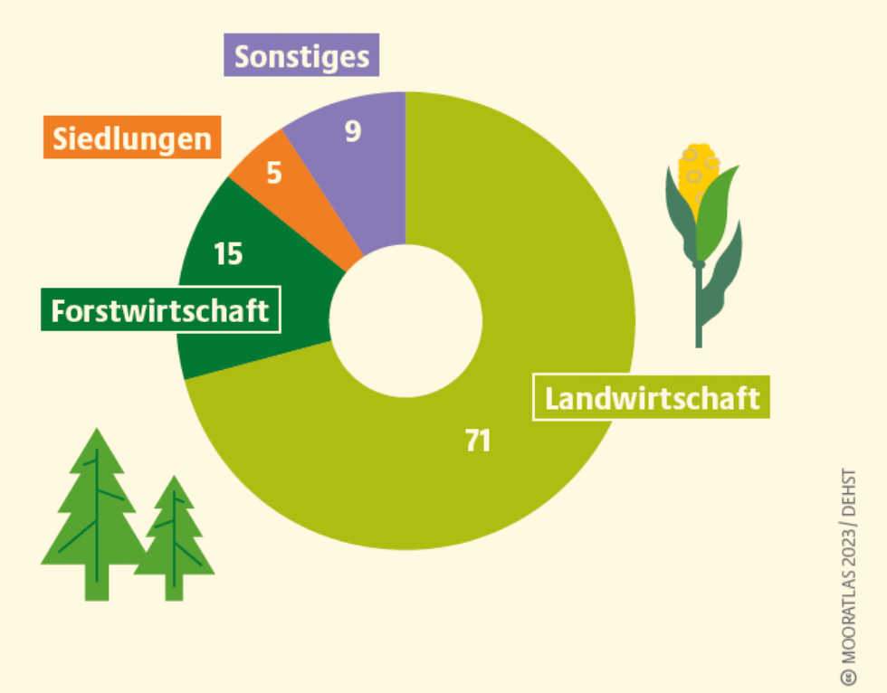Durch Entwässerung und Nutzung sind 95 % der deutschen Moore heute nicht mehr in einem natürlichen Zustand.